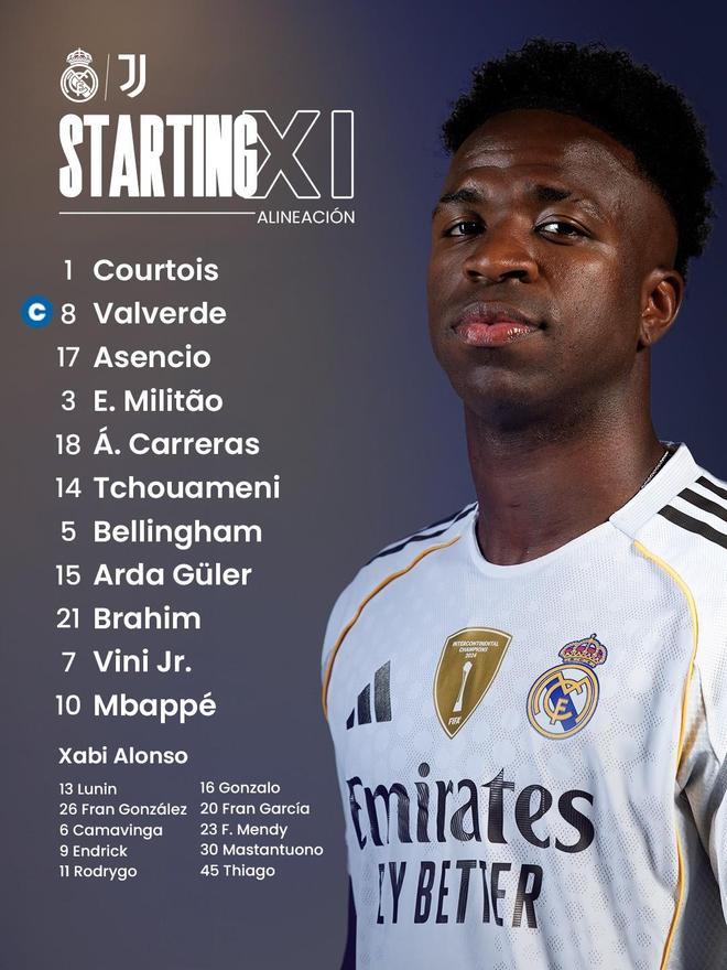 替补:13-卢宁、26-弗兰-冈萨雷斯、6-卡马文加、9-恩德里克、11-罗德里戈、16-贡萨洛-加西亚、20-弗兰-加西亚、23-费兰-门迪、30-马斯坦托诺、45-皮塔奇