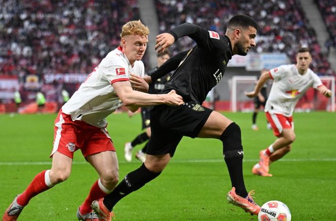 本场比赛莱比锡排出433阵型。扬-迪奥曼德、罗慕洛和努萨的进攻三叉戟联袂出击。阿桑-韦德拉奥果、赛瓦尔德和鲍姆加特纳组成3中场。巴库、威利-奥尔班、卢克巴和劳姆4后卫首发出战。古拉西奇担任首发门将。莱比锡首发阵容总身价1.92亿欧元,而斯图加特首发阵容总身价1.89亿欧元。