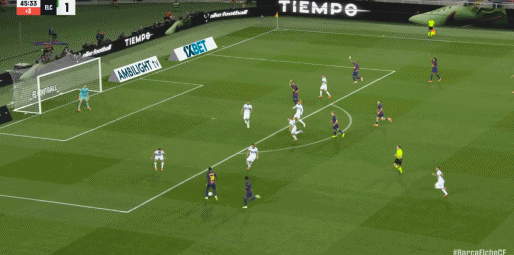 第45分钟,德容送妙传,费兰接球打门被扑